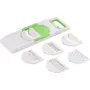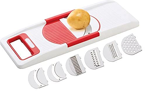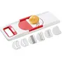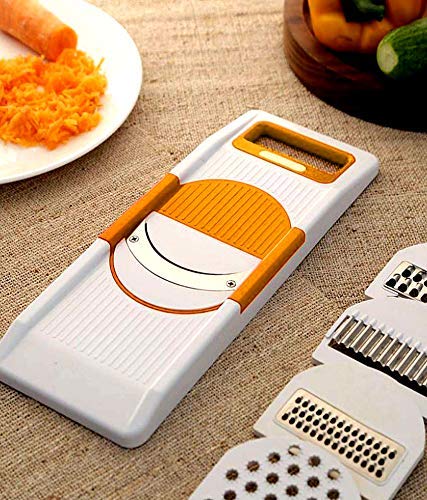 6 in 1 Slicer and Grater Easy to make different types of slice and pieces of soft fruits & vegetables like.... potato cucumbertomatocarrot apple pineapple cherry water melon. DIRECTION : Avoid the hassle and inconvenience of using different tools such as knives peelers and cutting boards for your cutting and chopping needs in the kitchen. The Quick vegetable Cutter is the perfect solution to all cutting chopping dicing slicing peeling tasks in your kitchen. Featuring a unique design with easy operation you can perform a large number of kitchen actions on this Cutter with ease and safety. Its ergonomic handle lets you chop large vegetables and fruits such as potatoes capsicum apples and more in one swift motion and the efficient design ensures uniform cutting at all times. UNBREAKABLE Materials for Ease of Use and Durability : Featuring a highly durable and sturdy plastic container with a strong rubber base at the bottom for enhanced grip The Quick Plastic Cutter makes it easy to cut your favorite fruits and vegetables on a kitchen table-top. These blades are built to last for a long time so you can continue grating cheese peeling potatoes dicing onions or slicing pineapples for years even with regular use.