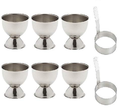 Set of stainless steel egg cups is an innovative, efficient and timeless kitchenware product. It neatly holds and displays shelled and unshelled eggs.Perfect for cooking eggs on any sized grill, this " egg ring will help achieve more consistent results with less waste!Stainless steel egg rings are the perfect way to make the perfect fried egg. Conventional frying pans donÆt allow for eggs to be cooked in an appetising way. When you think of the ideal egg, it likely comes with a bright yellow egg yolk and a thick egg white. Normally, when you cook in a normal frying pan, egg whites will leak across the pan and become thin and brittle. It doesnÆt make for an appetising egg, whereas using metal egg rings ensures that the egg white keeps its shape and will look as appetising as youÆd want it to when served.Do you want to make egg, pancake, cake quickly and keep it in shape? This item is a egg pancake mold, which are made of food grade stainless steel. Perfect pancake molds with handle design is easy to control. Let you enjoy making breakfast quickly and easily with eggs, pancakes, cookies, breakfast sandwiches.