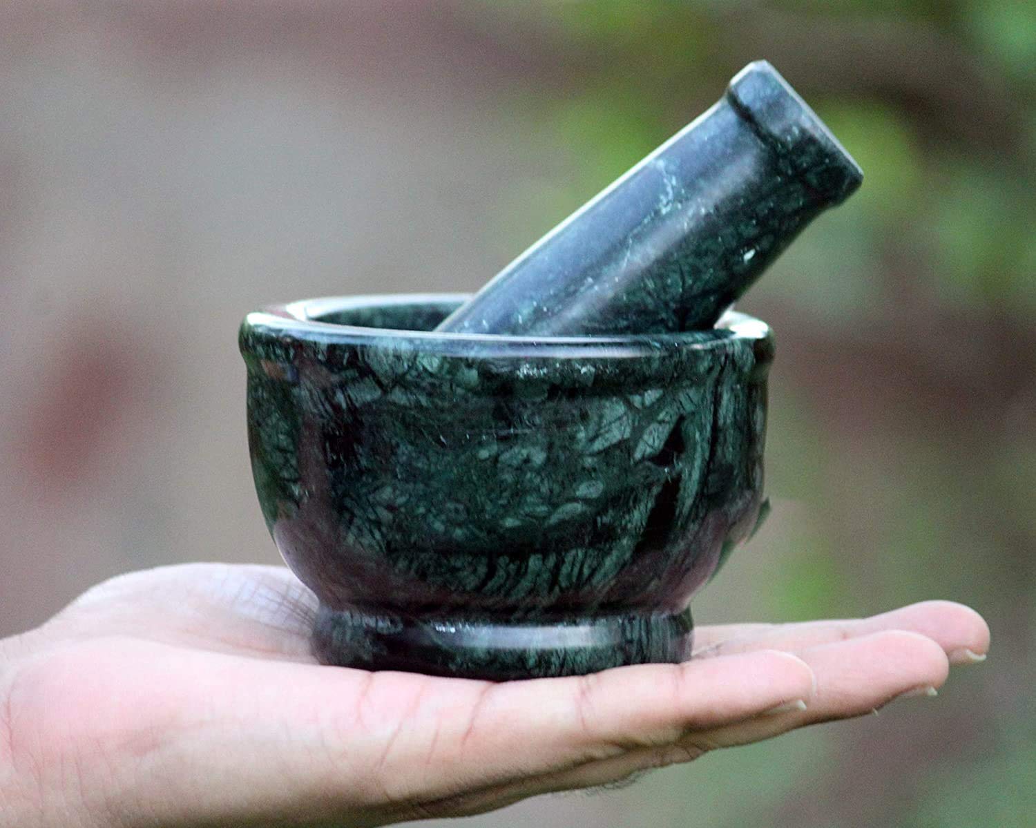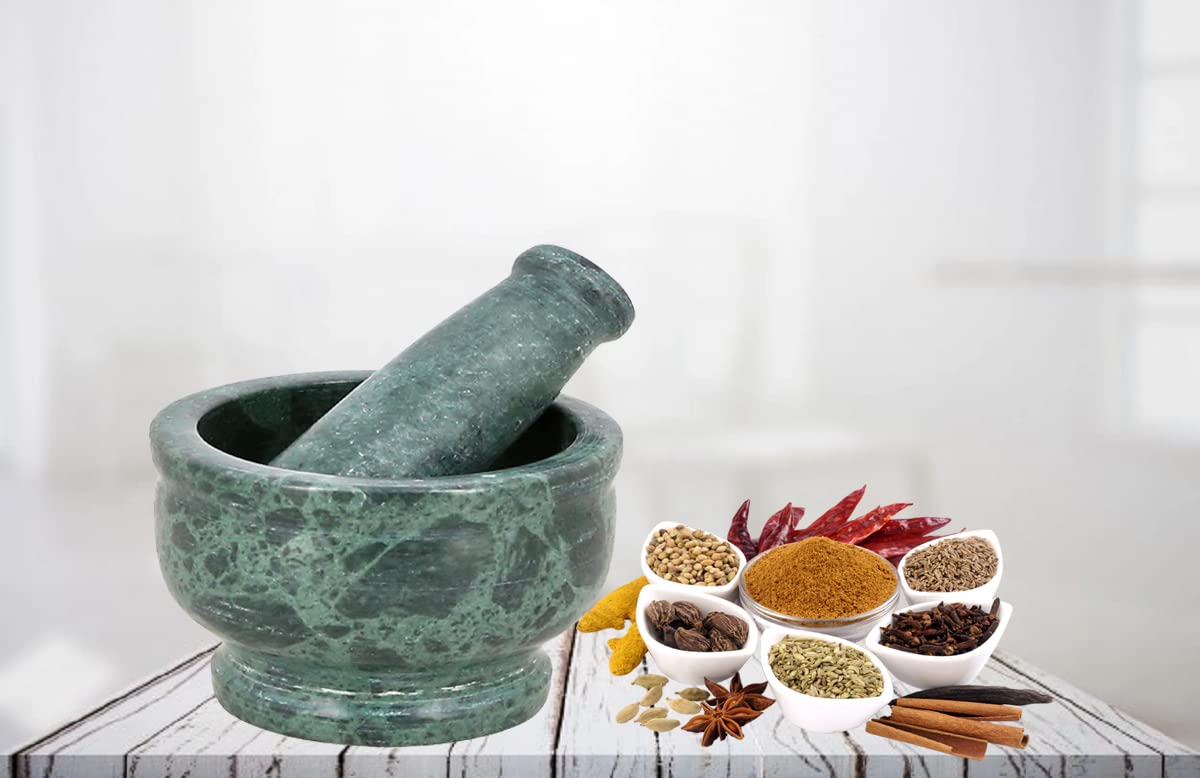 RAJASTHANI PUPPETS Green Marble Imam Dasta/Mortar and Pestle Set/Ohkli Musal/Kharal/Idi Kallu/Khal Musal/Khalbatta/Spice Grinder-4 Inches
