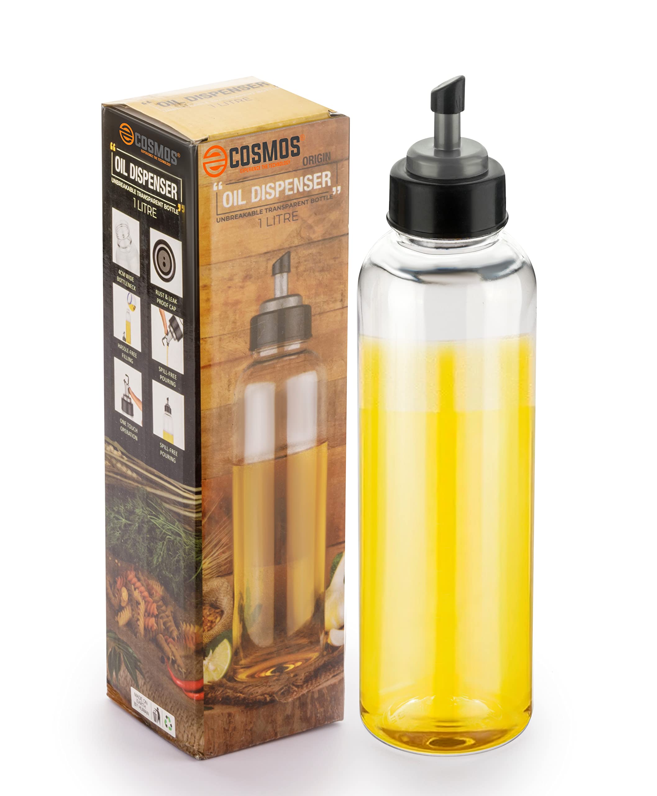 Food-Grade Plastic 1 litres Oil Dispenser for Cooking, Easy Flow Oil and Vinegar Bottle, Oil Pourer, Liquid Dispenser, Transparent, Unbreakable, Medium
