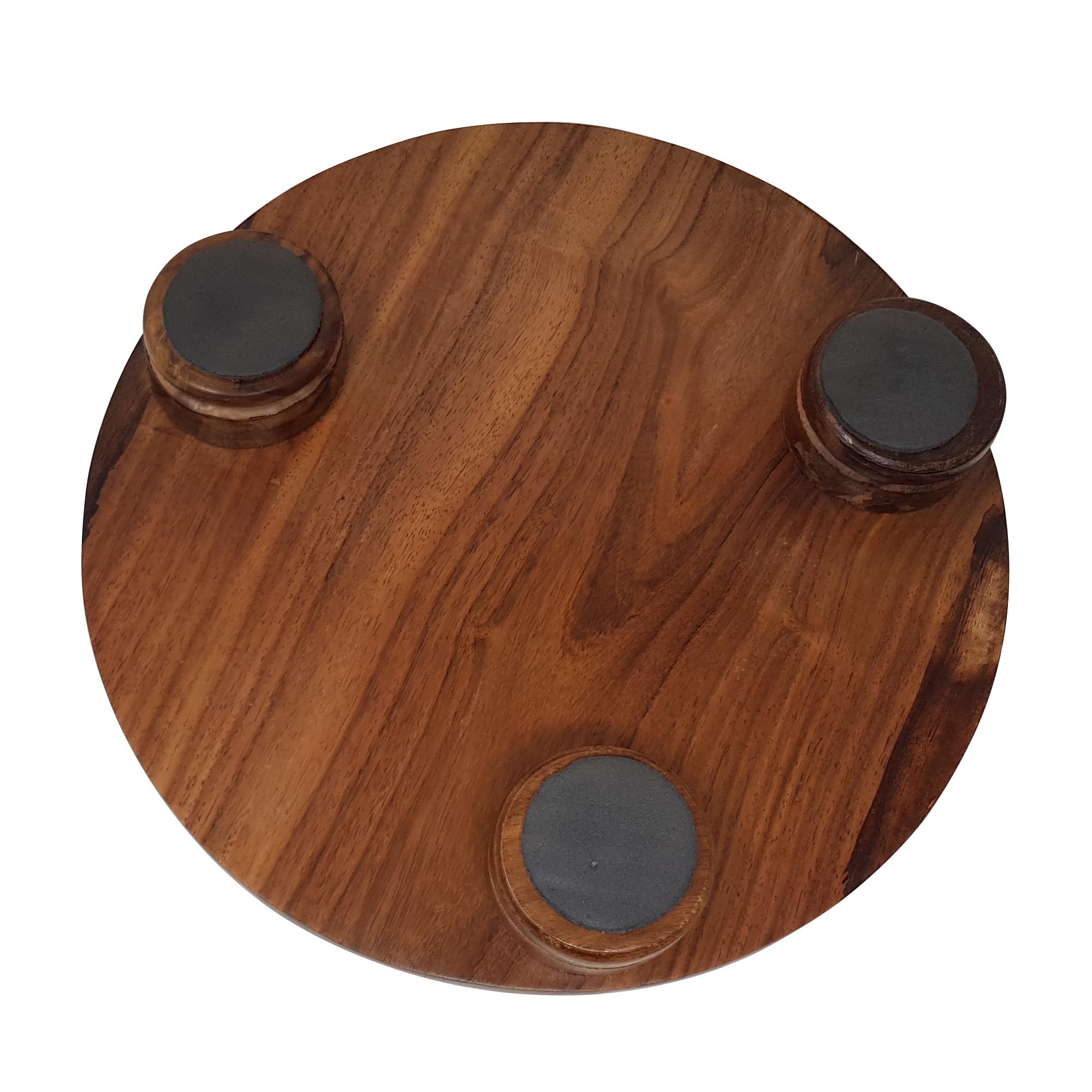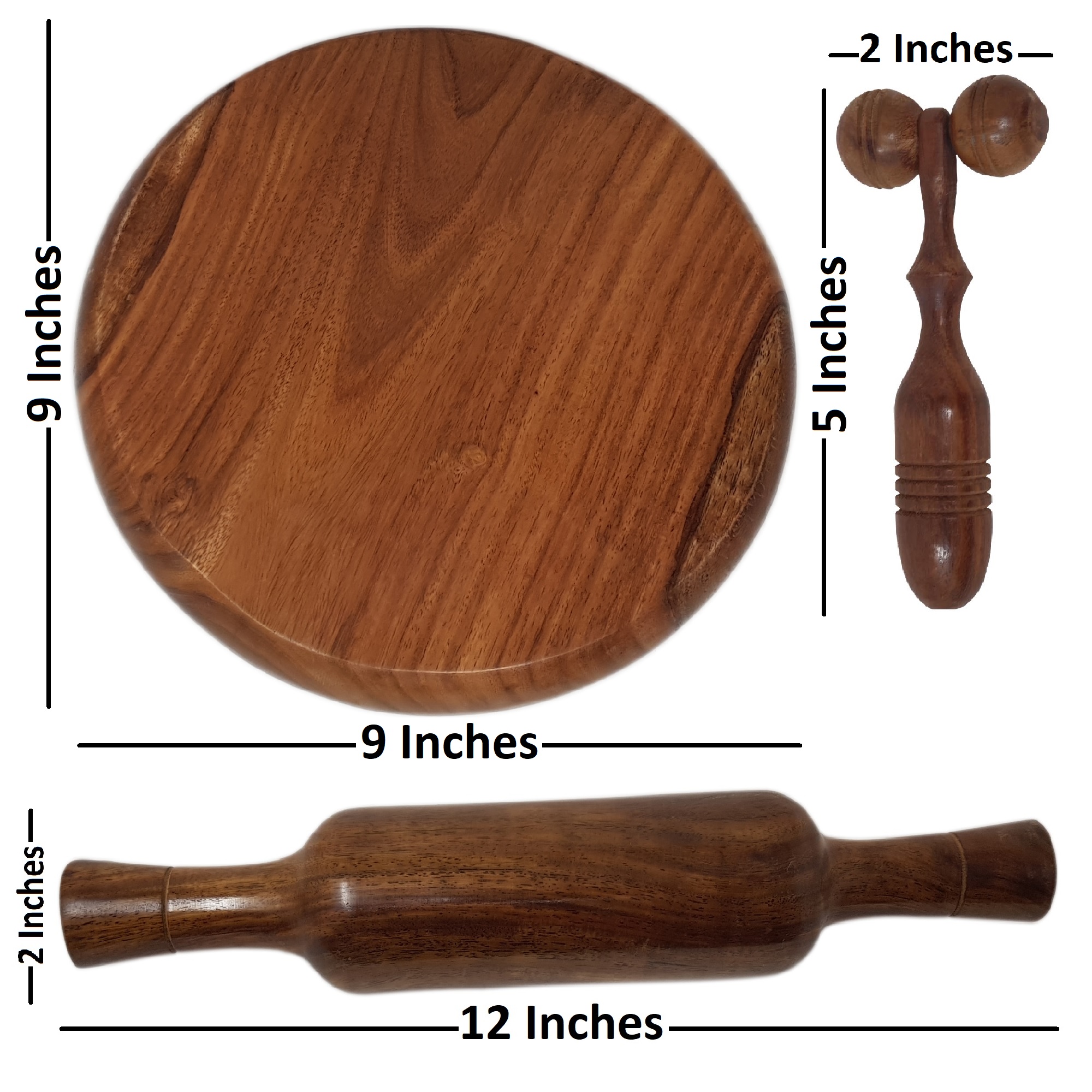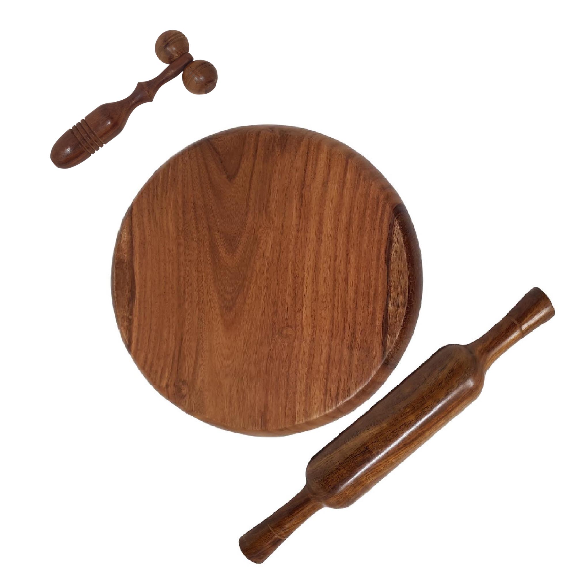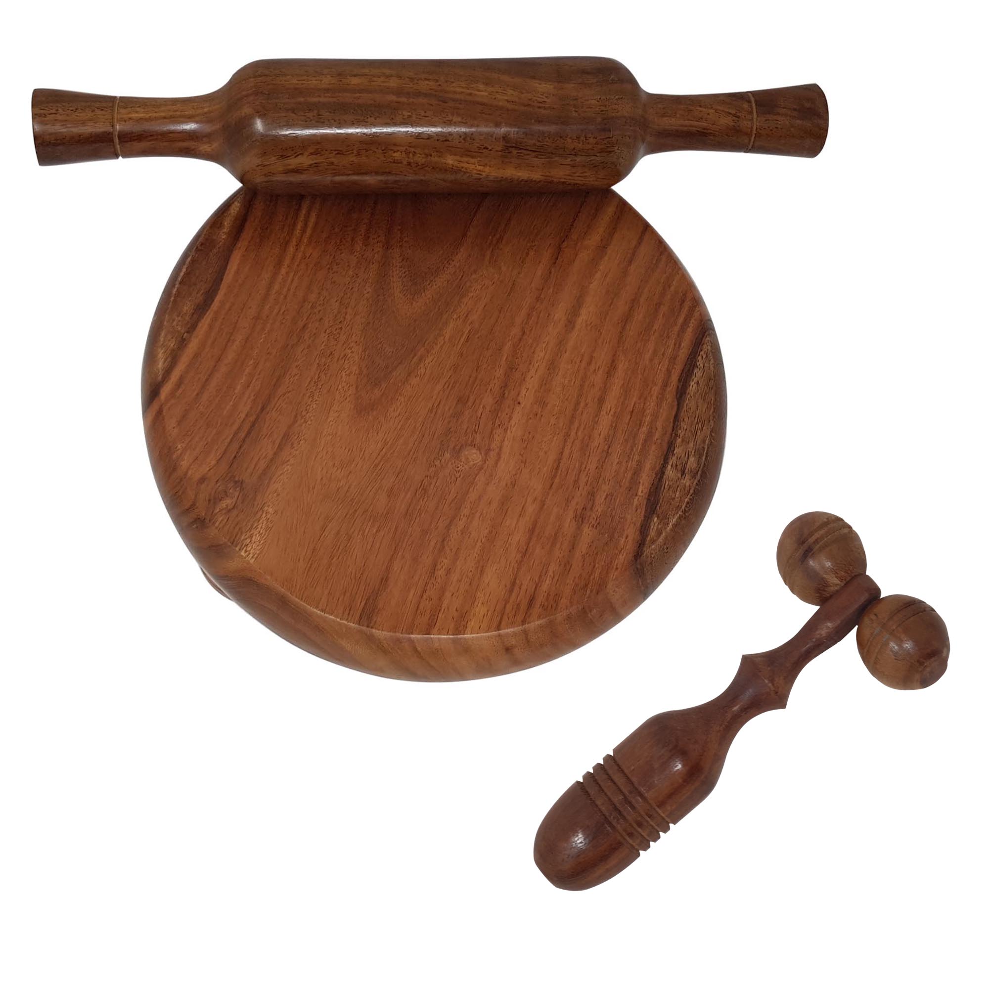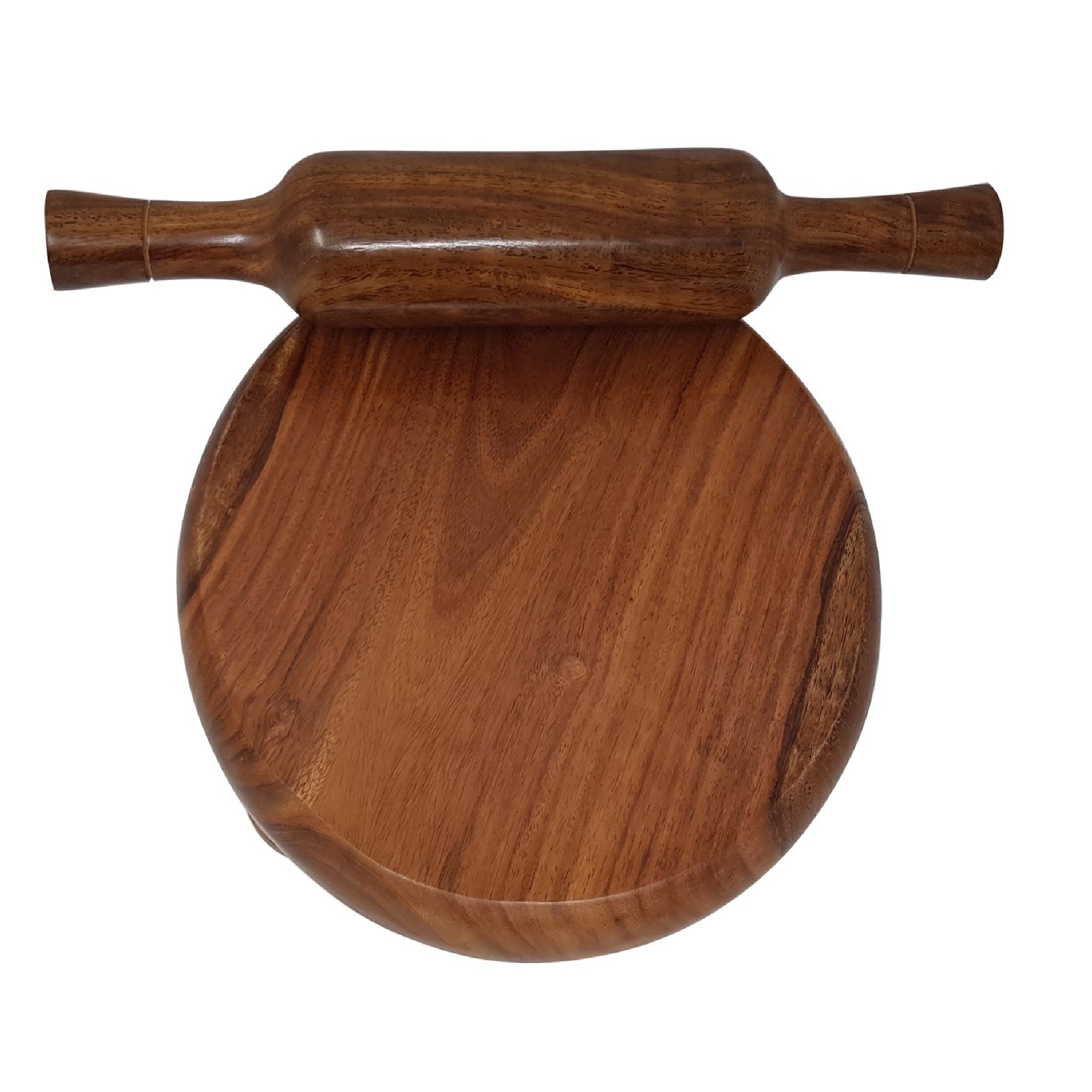 Traditional Chakla Belan for Dough Preparations If you prepare rotis, pancakes and other dough items at home you will like this handmade chakla belan by BuzyKart. It is made from pure sheesham wood which gives this rolling board and pin, a lovely texture and beautiful look. This wooden chakla belan has sufficient weight and grip required for preparing various dough food items. Also, the handles at the end of the rolling pin are comfortable to hold as you roll out your dough.Wooden chakla belan made from high quality sheesham wood. This wooden chakla belan is uniquely designed by our craftsmen. Color :Brown