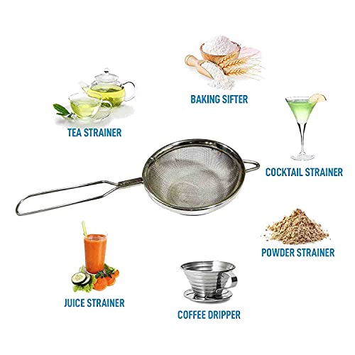 • DIMENSIONS - Length - 9 inch (22.5 cm) Sieve Diameter - 3.5 inch (8.5 cm) Height - 2 inch (5 cm) | Package Content - Pack of 1 Mesh Sieve