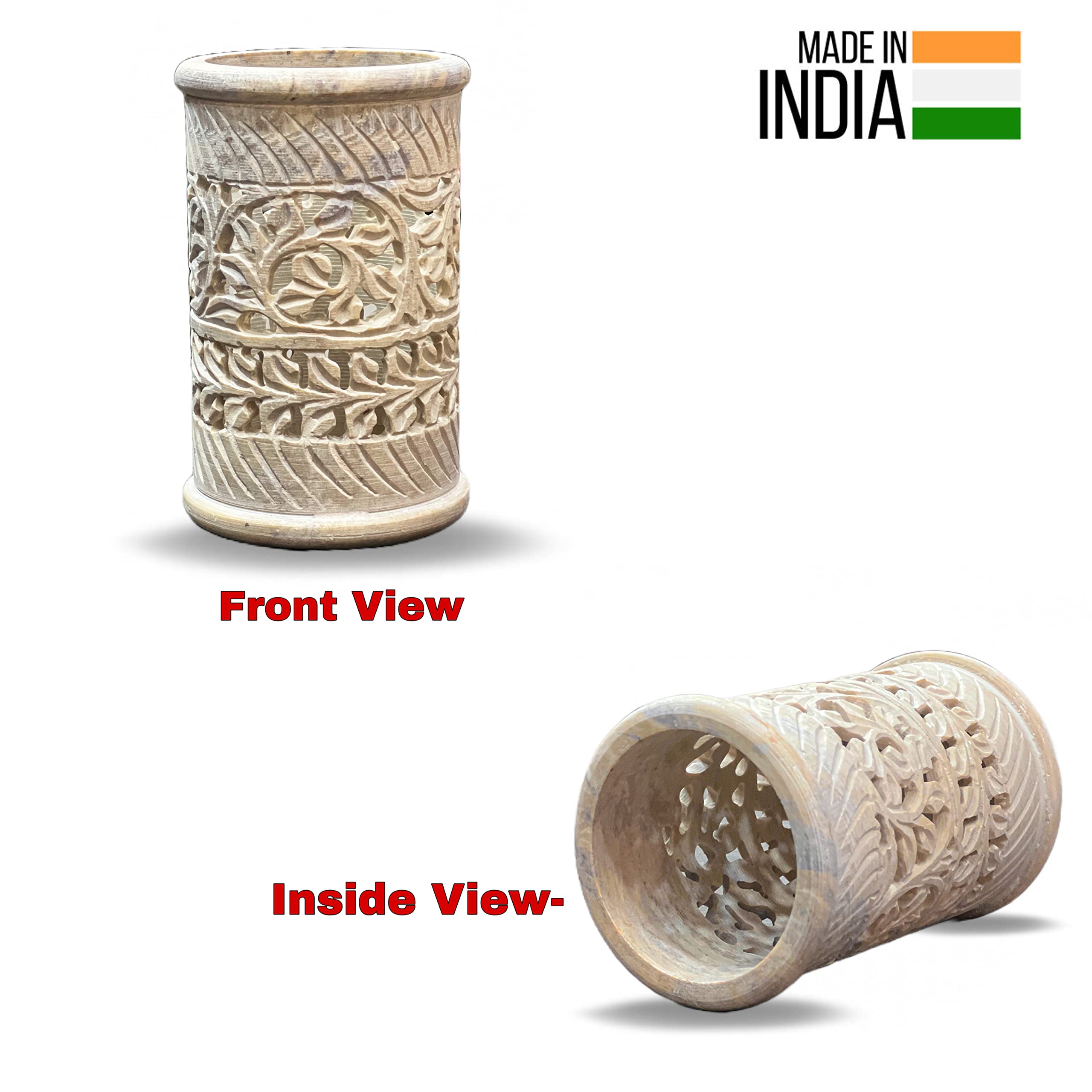AGRA SOFT STONE CARVING PRODUCTS This sleek office organizer is made of premium quality Stone material with an outstanding performance at every desk. It is light weighted and can conveniently be placed anywhere. This specialized pen holder has a compartment with the capacity to hold all kinds of pens markers pencils correction pens etc. Best suited for office and home this stylish product is a worthy investment against your precious penny.