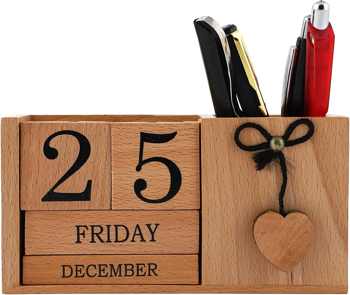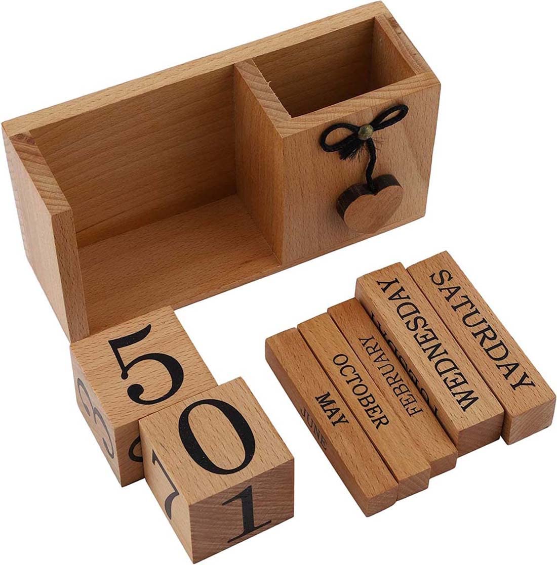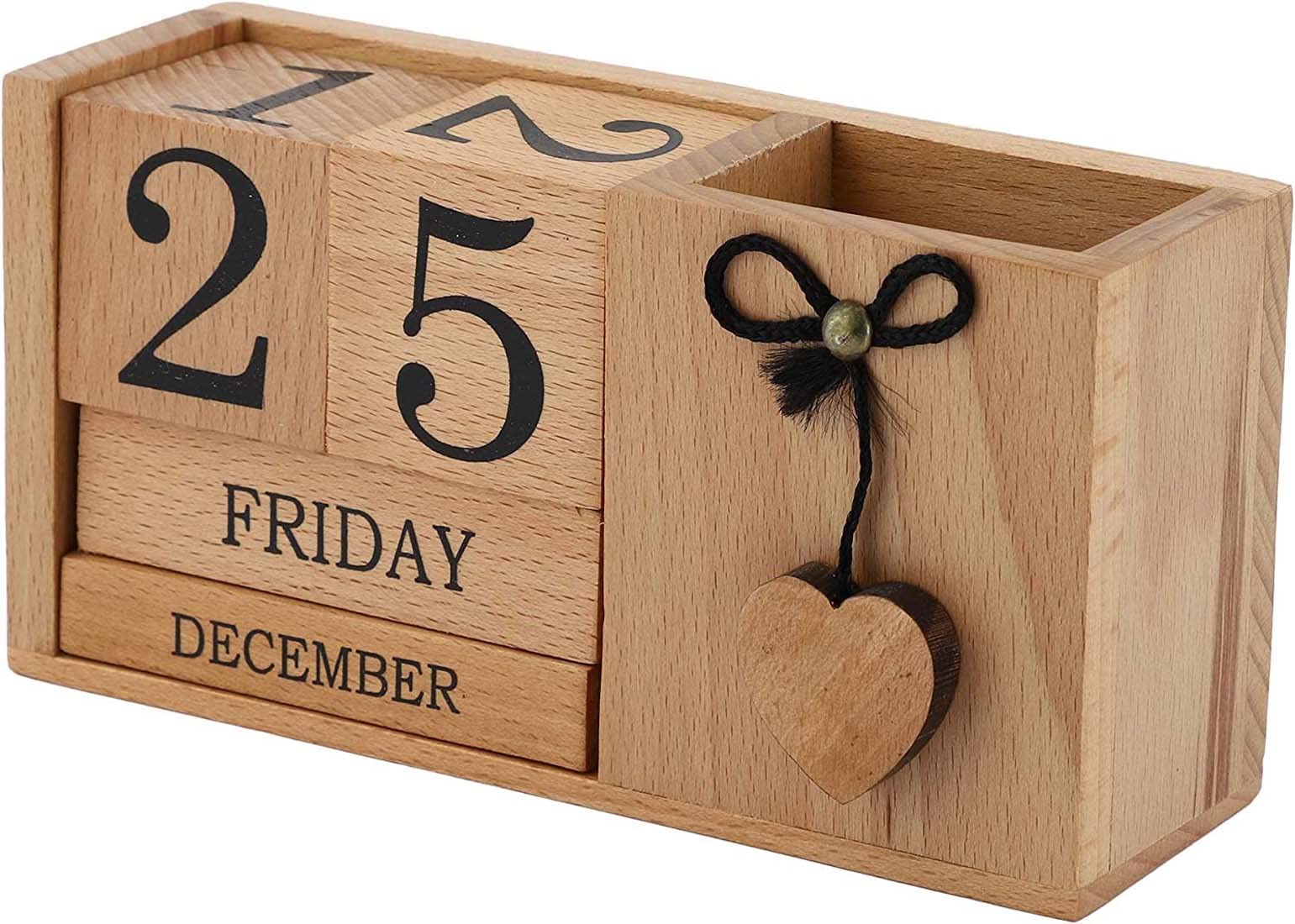 BIJNOR - METAL INLAY IN WOOD Handmade Wooden Desk Organizer Wooden Date Calendar Deck Calendar with Pen Stand Set Pen Stand Business Card Holder with Wooden Calendar for Office Table Accessories