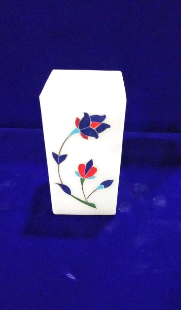 MARBLE INLAY ART AGRA - PACCHIKARI Marble Pen holder Inlay work Table decor size 2x2x4 inch.