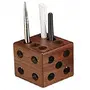 SAHARANPUR HANDICRAFTS 21 Compartments Wood Pen Holder/ Paper wieght (Brown)
