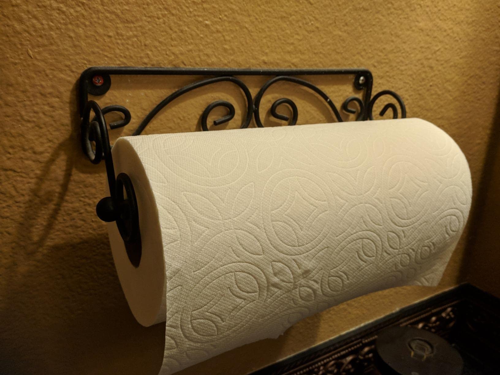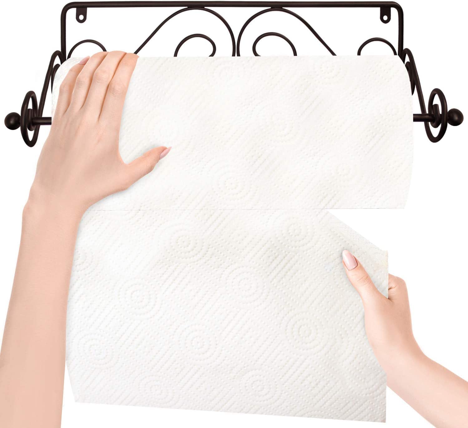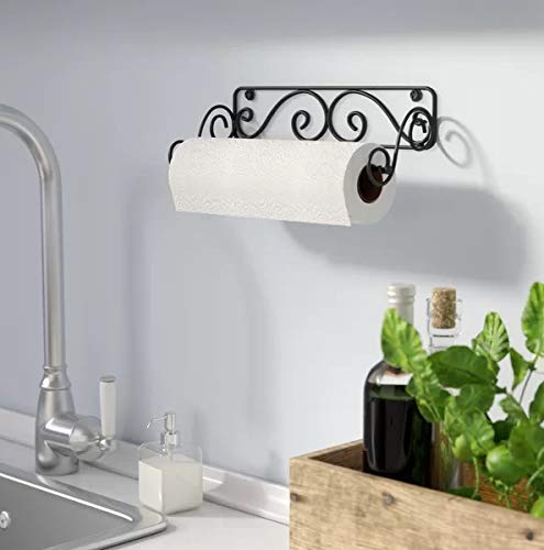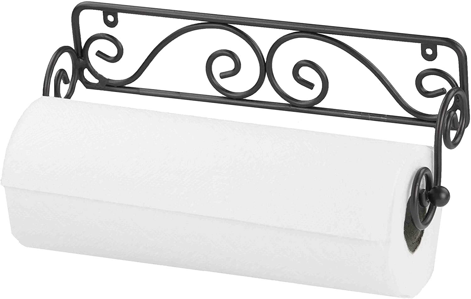 Hang paper towels and keep them close at hand with this convenient holder. The intricate spiral design adds an elegant touch to any kitchen dcor. Composed of heavy duty Iron it holds a single paper towel roll and conveniently mounts up the wall to free up countertop space.