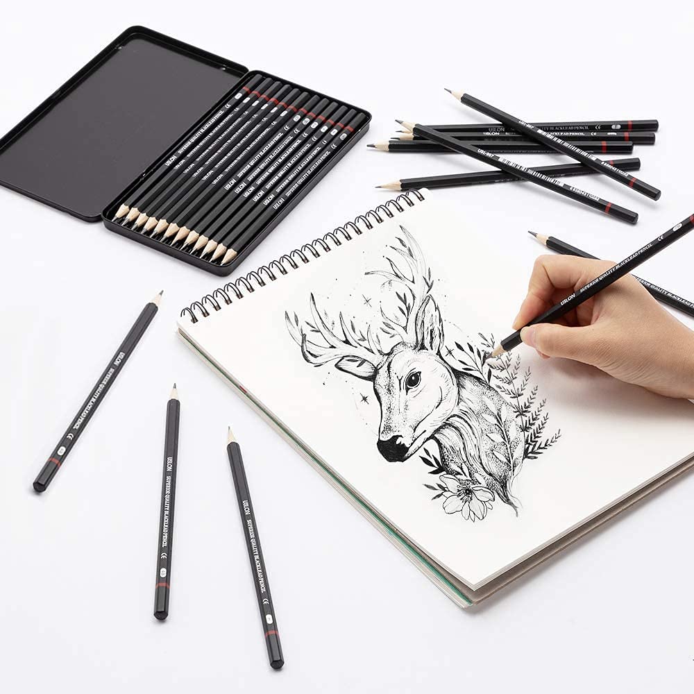 • SUPERIOR QUALITY PENCILS Perfect for Sketching Shading landscapes drawings etc. great shading and blending capabilities detailed artwork and textured shading like a professional artist.