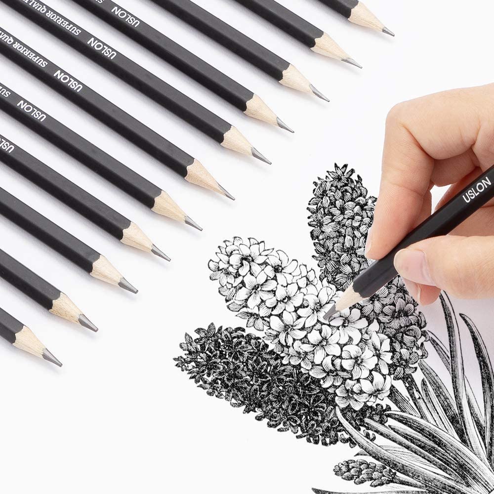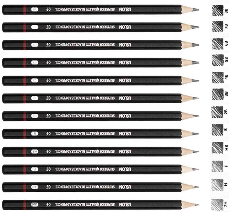 This set of professional drawing pencils is made of graphite that can create both broad strokes and precise lines and is encased in lightweight and durable basswood. Its Hexagonal barrels can fit standard sharpeners and easy grip for precise control. These professional-grade pencils will not scratch the surface of the paper and are easily erased. Having a strong core makes a wonderful coverage and minimizes the number of broken points. Choosing the pencil that fits your artistic concept and expresses your vision freely. With this versatile set you can easily be drawing from thick blending to finely detailed illustrations to deep shading. Great for artists and amateurs of all ages who want to develop drawing skills or simply sketch out ideas.