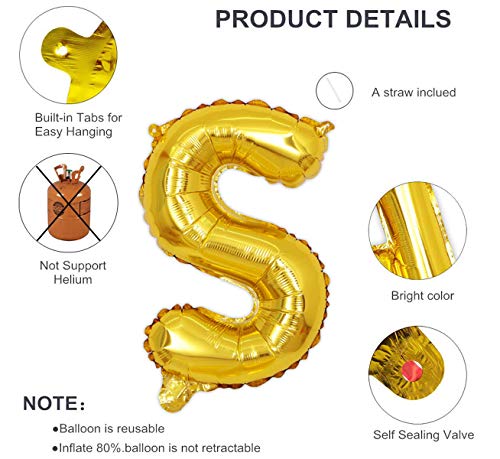 16 Inch Gold Letter Balloons Alphabet Foil Balloons for Brthday Wedding Graduation Bachlorette Bridal Shower Party Decorations Supplies