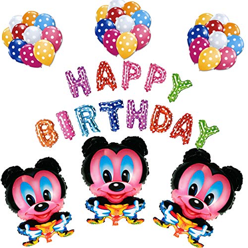 3 Pcs Mickey Mouse Cartoon Character Foil with 1Pcs Happy Brthday Banner and 25 Multi Polka Dot Ball