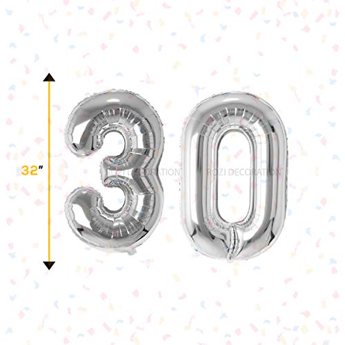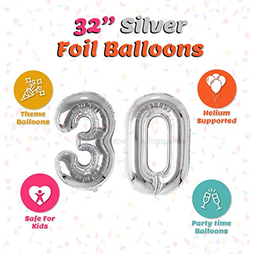 32" Inch Number Foil Balloon Helium Quality -(Pack of 2 Unit) (Silver-30)