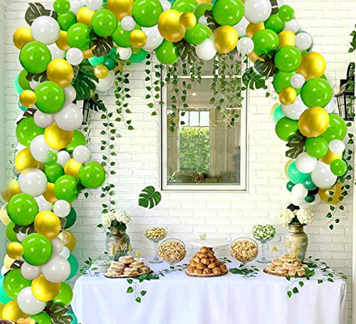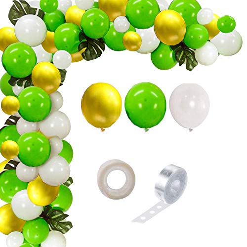 Balloon Garland Kit Balloon Arch Garland for Wedding Brthday Anniversary Party Decorations (Gold Green White) Kit of 107 Pieces (Jungle Safari Theme)