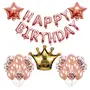 Happy Brthday Foil Balloon 1 Crown Foil Balloons with Rose Gold Chrome Pack of 10 + 2 Rose Gold Star Foil Balloons