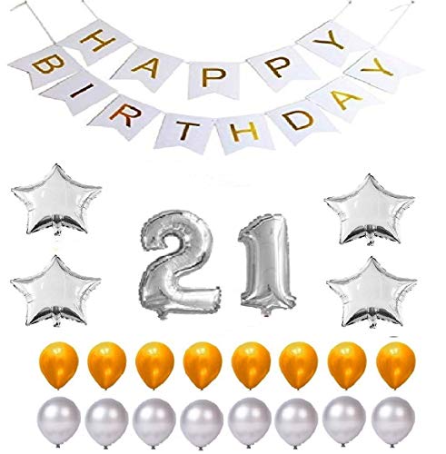 Color:21st Year SilverAdd a touch of elegance with these latex Balloons. Picture Perfect for any occasion be it a Brthdayanniversary or any other celebration. Mix and match with other colours or prints for a beautiful bouquet. Beautiful decorations makes a shiny Brthday party full of elegance for KDs and adults. Happy Brthday banner balloons keep your eyes on the theme. These gLosey foil balloons and confetti balloons are suitable for Brthemed parties of all ages party and create a great memories with your KDs family and friends. Lets enjoy a shiny and amazing party