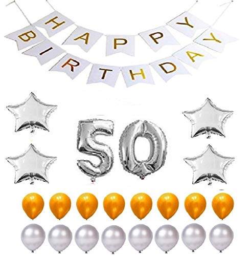 Color:50th Year SilverAdd a touch of elegance with these latex Balloons. Picture Perfect for any occasion be it a Brthdayanniversary or any other celebration. Mix and match with other colours or prints for a beautiful bouquet. Beautiful decorations makes a shiny Brthday party full of elegance for KDs and adults. Happy Brthday banner balloons keep your eyes on the theme. These gLosey foil balloons and confetti balloons are suitable for Brthemed parties of all ages party and create a great memories with your KDs family and friends. Lets enjoy a shiny and amazing party