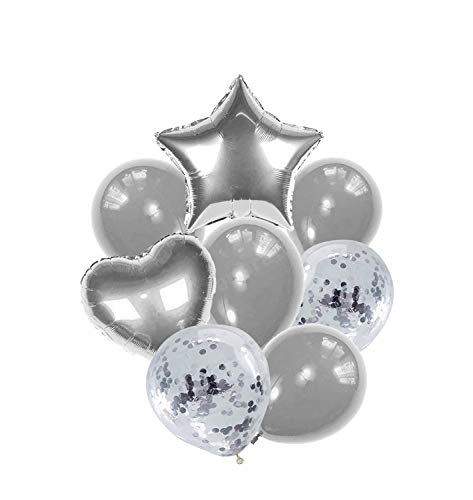 Latex & Foil Balloons Set for Brthday/Small Shower/Party Decoration- (8 Pcs Silver)