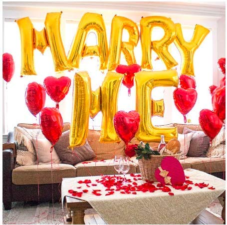 Style Name:"Marry Me" Proposal Letter BalloonsLet the balloons do the talking with a Valentine's Day proposal. Spell out 'Marry Me' with letter balloons and add red hert balloons around to complete the scene. Create a picture-perfect proposal moment that has love written all over it. nd to express your love.