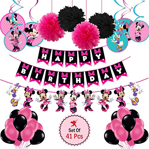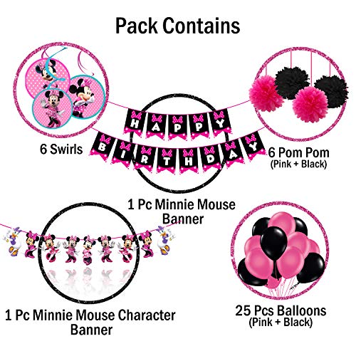 Style Name:ComboPackage Includes- 1 Happy Brthday Banner 1 Minnie Mouse Character Banner 6 Swirls 6 Pom Pom 25 Pcs Pink and Black Latex Balloons. This combo can create a great Minnie mouse party decoration or minnie mouse Brthday party decoration. Minnie mouse party decoration also includes minnie mouse balloons for Brthday party. Do you want to capture a perfect instagram picture?? If yes... then go for it!!