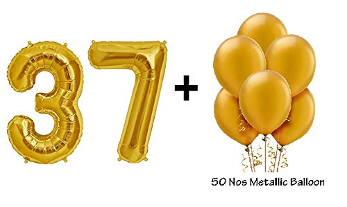 Number 37 Gold Foil Balloon and 50 Nos Gold Color Latex Balloon Combo