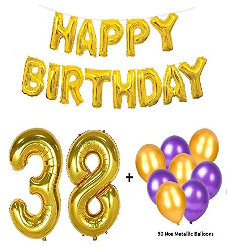 Number 38 Gold Foil Balloon & Happy Brthday Banner