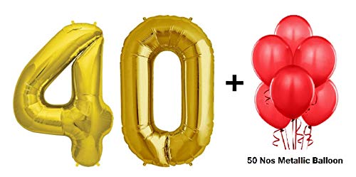 Number 40 Gold Foil Balloon and 50 Nos Red Color Latex Balloon Combo