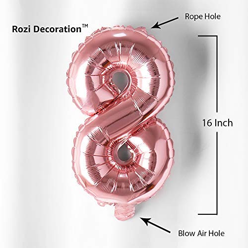 Style Name:Rose Gold-8Give your big party a personalized presentation with Rose Gold Number Balloons! This collection of metallic balloons features every number from zero to nine so you can mix and match to form any number. Whether you're celebrating a big Brthday graduation or anniversary these shining Rose Gold Number Balloons are perfect for your celebration. Mix and match with coordinating foil and latex balloons balloon accessories solid color tableware and other party supplies for a custom party theme!