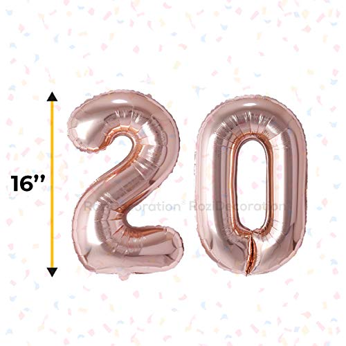 Numbers Foil Balloon 16" Inch -(Pack of Two Unit) Rose Gold (Rose Gold-20)