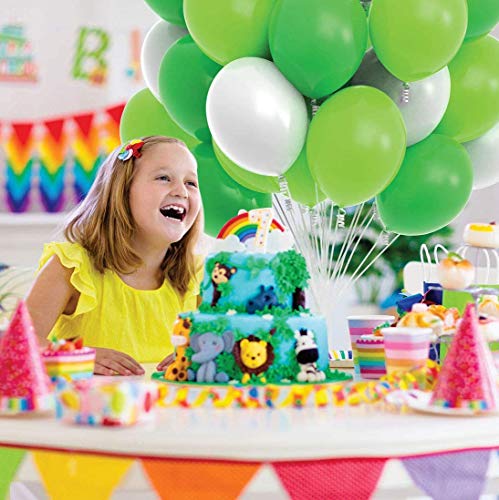 Party Balloons Green and White Balloons with Ribbon for Dinosaur or Safari Color Theme Party Decoration Small Shower Brthday Parties Supplies Helium Quality (Pack of 50)