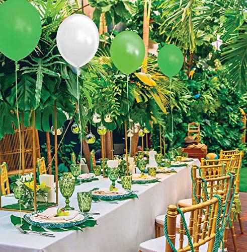 Size:Pack of 50Contains 50 premium dark green fruit green and white color party balloons with ribbons enough ribbon for all balloons The most perfect balloon pack for your dinosaur and green themed Brthday party graduation outdoor event bridal or Small shower or any other occasion Use for your jungle tropical or any green themed wedding anniversary Bachelorette or mix and match with other color to create that perfect atmosphere in your desired theme Thickened balloons for longer lasting fun; Blow by mouth air pump or helium Ideal party decoration or party favor. Made of premium helium-quality pure latex