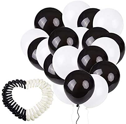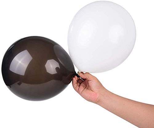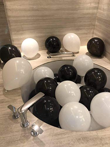 Party Balloons Helium Balloons Pure Black/White Color Latex Balloons for Brthday Wedding Anniversary Festival Home Decoration with 2 ribboons (1 Black1 White) (Pack of 75)