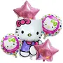 Printed Hello Kitty Theme foil Balloon Bouquet(Multicolour Pack of 5)