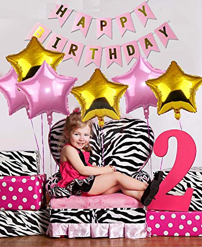Color:Pink11Pcs Brthday Decoration Combo Includes: 1Pc Pink happy Brthday banner 10Pcs Star foil balloons.Pink happy Brthday banner has golden foil print and is made of 300Gsm cardstock. Note: Banner is Diy kindly assemble before party.10Pcs Star foil balloons has 5Pcs Pink star and 5Pcs Golden star foil balloon. They are 18" in size.They can be filled with helium or air.°¬°Want to capture a great Brthday instagram picture?? buy this... click and post !!! You are just one step away