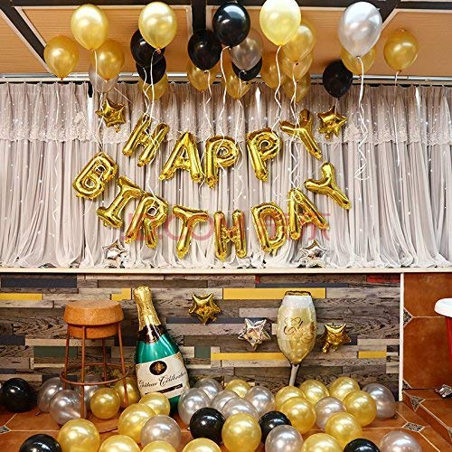 Note: Package Contains "HAPPY BrthDAY" GOLDEN COLOR Foil Letters Balloon & pack of 250 Pcs Black Golden & Silver Balloons . Other balloons in pic are not included. Due to different screens please allow the product visibility have a little differences from pictures shown.Because lights used during photo shoot of product.But quality of products are same as described.Every care has been taken to ensure that the product details are correct. All dimensions are measured by hand so there might be a very slight variation. Whilst the image is a true representation of the standard product slight variation in color replication may occur due to lighting/flash during photography or your monitor settings.