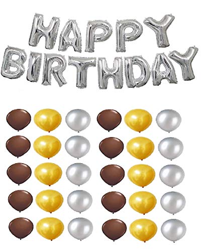 • Happy Brthday alphabet letter foil balloon (Silver) set of 13 letters Pack of 50 Pcs Brown Golden & Silver balloons