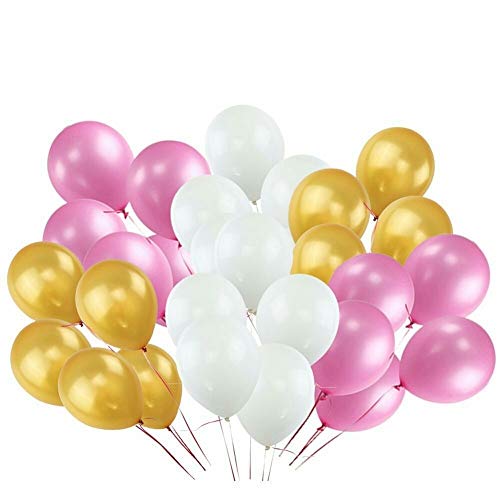 Size:Pack of 30|Color:Golden White PinkProducts is famous for sell varieties of Brthday supplies and other party supplies. we are famous for gift items balloons KDs play items and party decoration items. Metallic Finish Latex balloons are beautiful and fun addition to any party. No party would seem complete without balloons to play around with. Balloons are not just for KDs parties they can be used anywhere anytime and for any occasion you wish to celebrate. Whether it is a party in the office a Christmas bash a Small shower wedding or a causal party for friends balloons seem to be an essential of party supplies. Along with buntings balloons are the most favored decorations for any occasion
