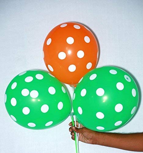 Jindal Party Products Polka Dot Finish Balloons For Birthday / Anniversary / Wedding Party Decoration (Green, Orange) Pack of 30