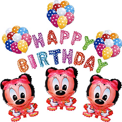 3 Pcs Mickey Mouse Cartoon Character Foil with 1Pcs Happy Brthday Banner and 25 Multi Polka Dot Ball