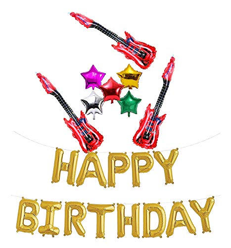Pack of 3 Guitar Shape and 5 Multi Star Shape and 1 Pcs Happy Brthday Foil Balloons for Brthday and Theme Party