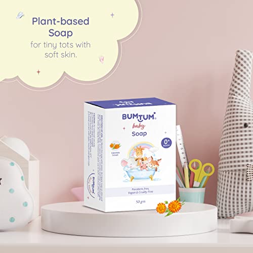 Bumtum Baby Soap with Goodness of Calendula extractParabens Free Vegan& Cruelty Free 50Gm Pack of 4