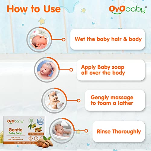 OYO BABY Gentle Baby Soap - Bathing Bar | For Babyâs Sensitive Skin | Gentle Cleansing Skin-friendly 75gm (Pack of 5)