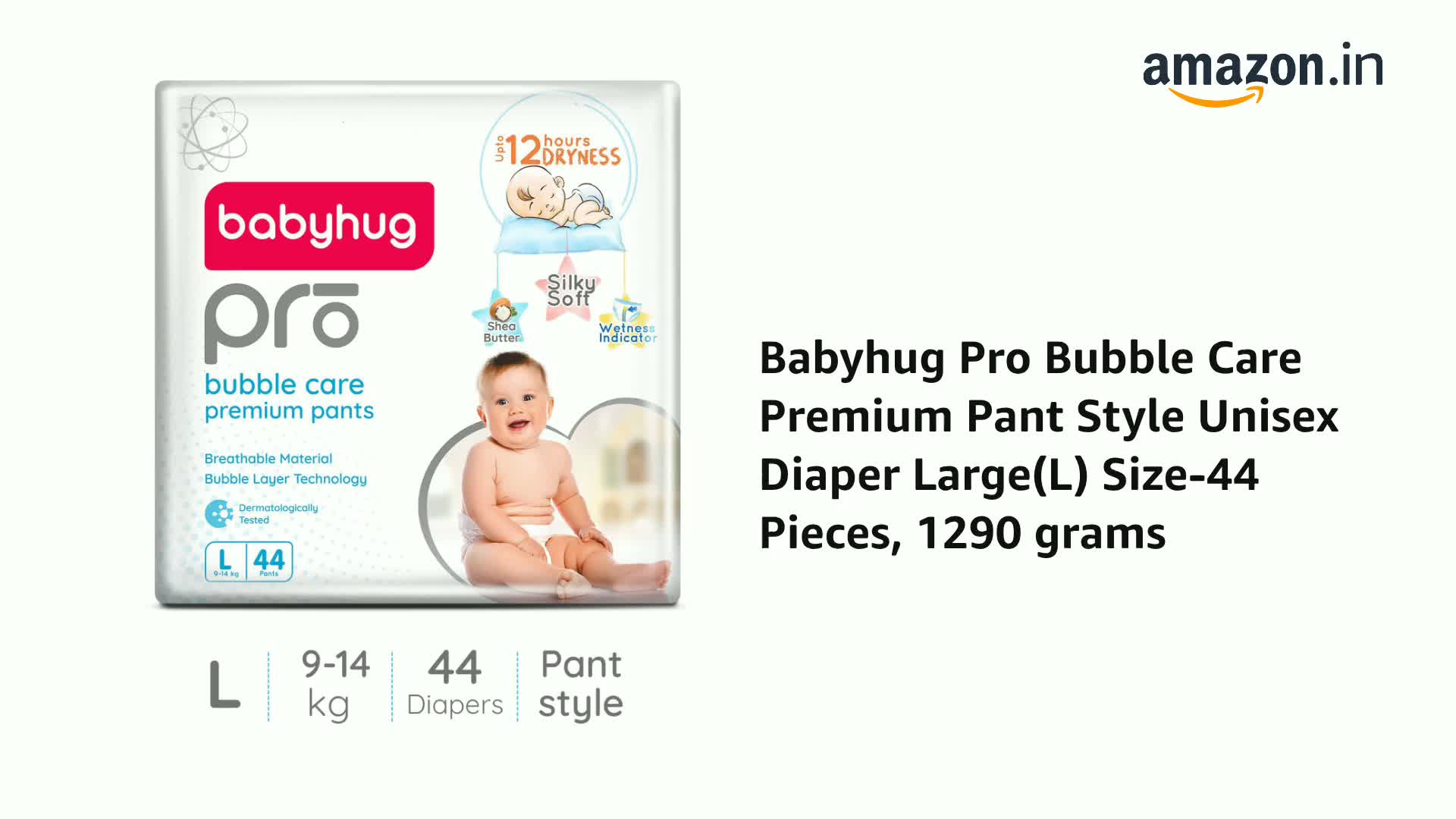 babyhug Pro Bubble Care Premium Pant Style Unisex Diaper Large(L) Size-44 Pieces, 1290 grams