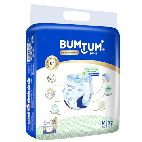 Bumtum Baby Diaper Pants, Medium Size, 72 Count, Double Layer Leakage Protection Infused With Aloe Vera, Cottony Soft High Absorb Technology (Pack of 1)