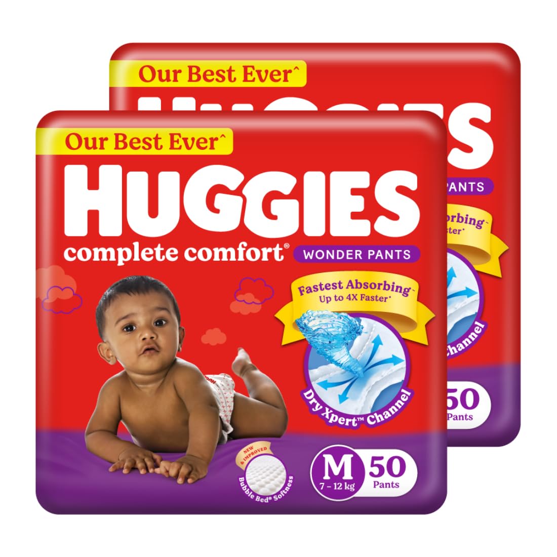 • New & Improved Huggies Complete Comfort Wonder Pants - India's Fastest Absorbing diaper with Patented Dry Xpert Channel; Medium size / M Size baby diapers