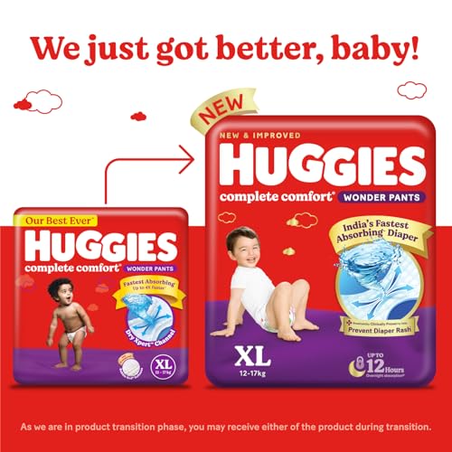 • New & Improved Huggies Complete Comfort Wonder Pants - India's Fastest Absorbing diaper with Patented Dry Xpert Channel; Extra Large size / XL Size baby diapers