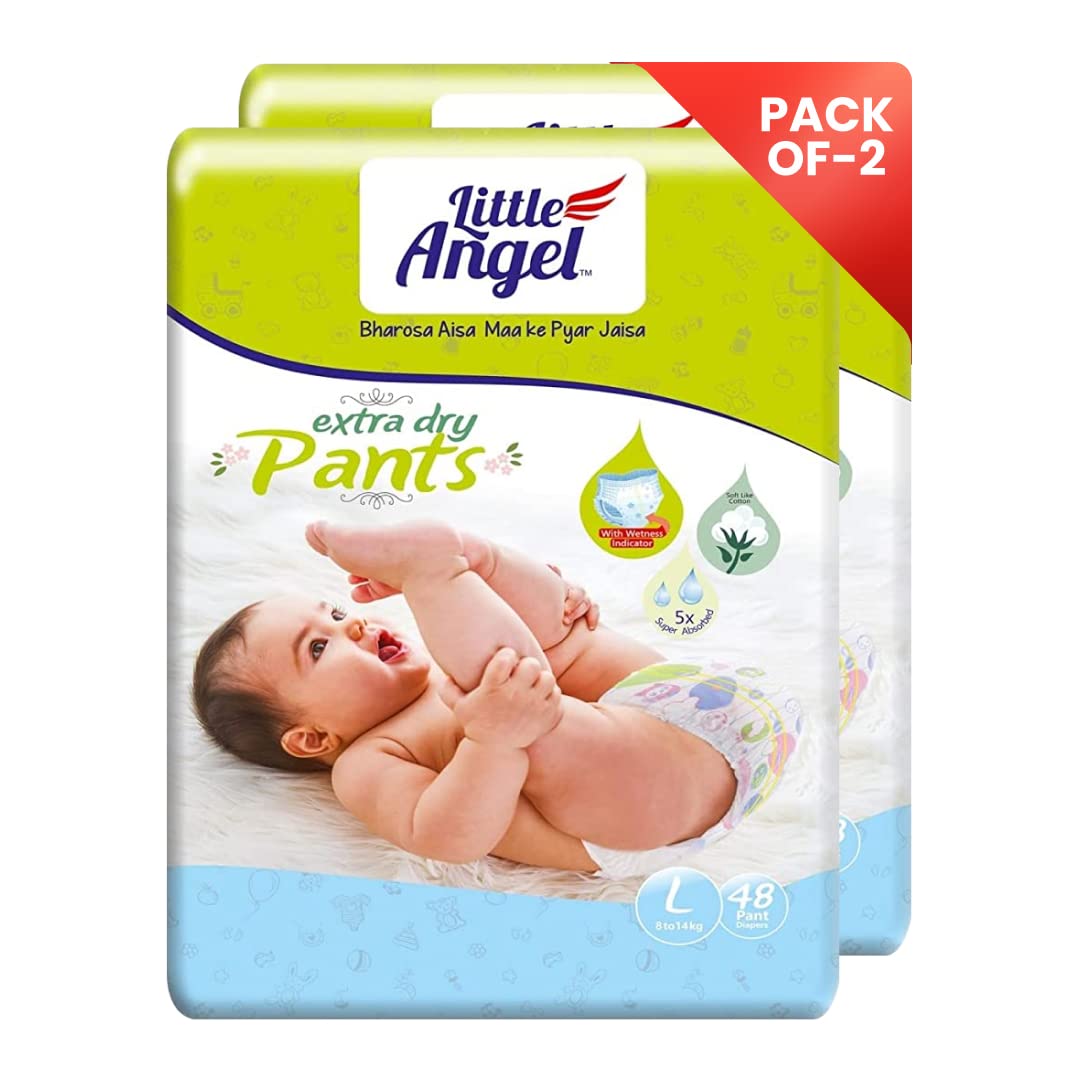 Little Angel Extra Dry Pants the perfect solution for keeping your little one's skin dry and comfortable all day long. These innovative diaper pants are specifically designed for Indian babies with unique features like a wetness indicator that lets you know when it's time for a change. The extra thin core is designed to provide superior absorbency while the ultra-soft air fresh material ensures your baby's delicate skin stays dry and comfortable. The 360-degree soft elastic band provides added protection against diaper rashes and the advanced double leak protection system provides peace of mind for worried parents. With their superior absorbency and comfortable fit Little Angel Extra Dry Pants are the perfect choice for Indian mothers who want the best for their babies. Trust Little Angel to keep your little one dry and happy all day long.