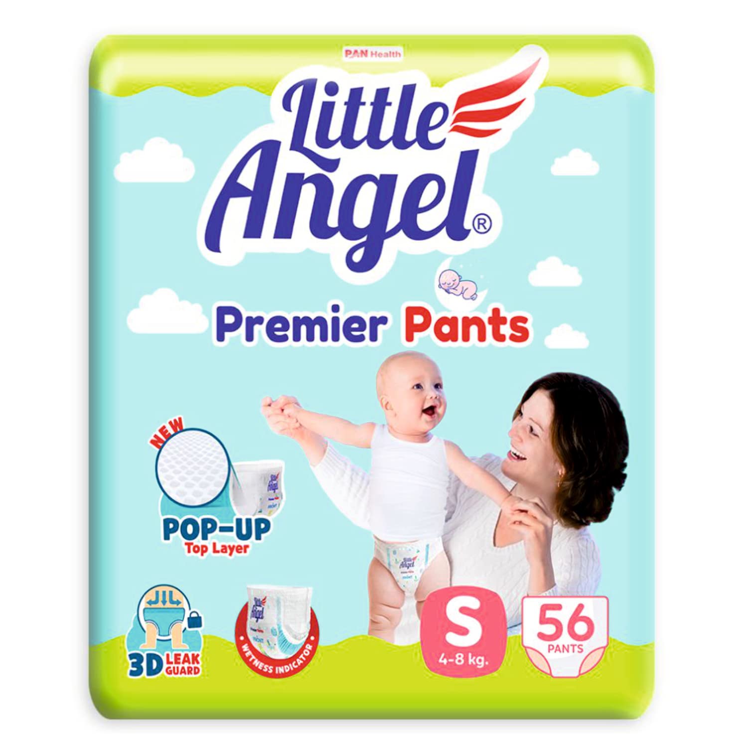 Little Angel Premier Pants Baby Diapers Small (S) Size 56 Count with Wetness Indicator 4-8 Kg