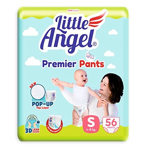 Little Angel Premier Pants Baby Diapers, Small (S) Size, 56 pcs with Wetness Indicator, 4-8 Kg, 1 count