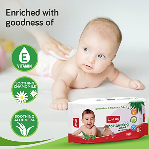 LuvLap Baby Diaper Pants M Size (Medium) with Aloe Vera Lotion for rash protection Pack of 144 Count (72x2) with upto 12Hr protection For babies of 7 to 12Kg Jumbo packAvailable sizes - Newborn (upto 5Kg) Small (4-8 Kg) Medium (7-12Kg) Large (9-14Kg) XL (12-17Kg)LuvLap Paraben Free wipes for baby skin with Aloe Vera Fragrance Free pH Balanced Dermatologically Safe Baby Wipes Rich in Vitamin E & chamomile extract 72 Wipes / Pack 6 PacksLuvLap moisturizing baby wipes with aloe vera are the perfect wipes for your baby's delicate skin. Enriched with the goodness of aloe vera and chamomile they are completely free of alcohol and harmful parabens. After all your baby's safety is our prime concern.