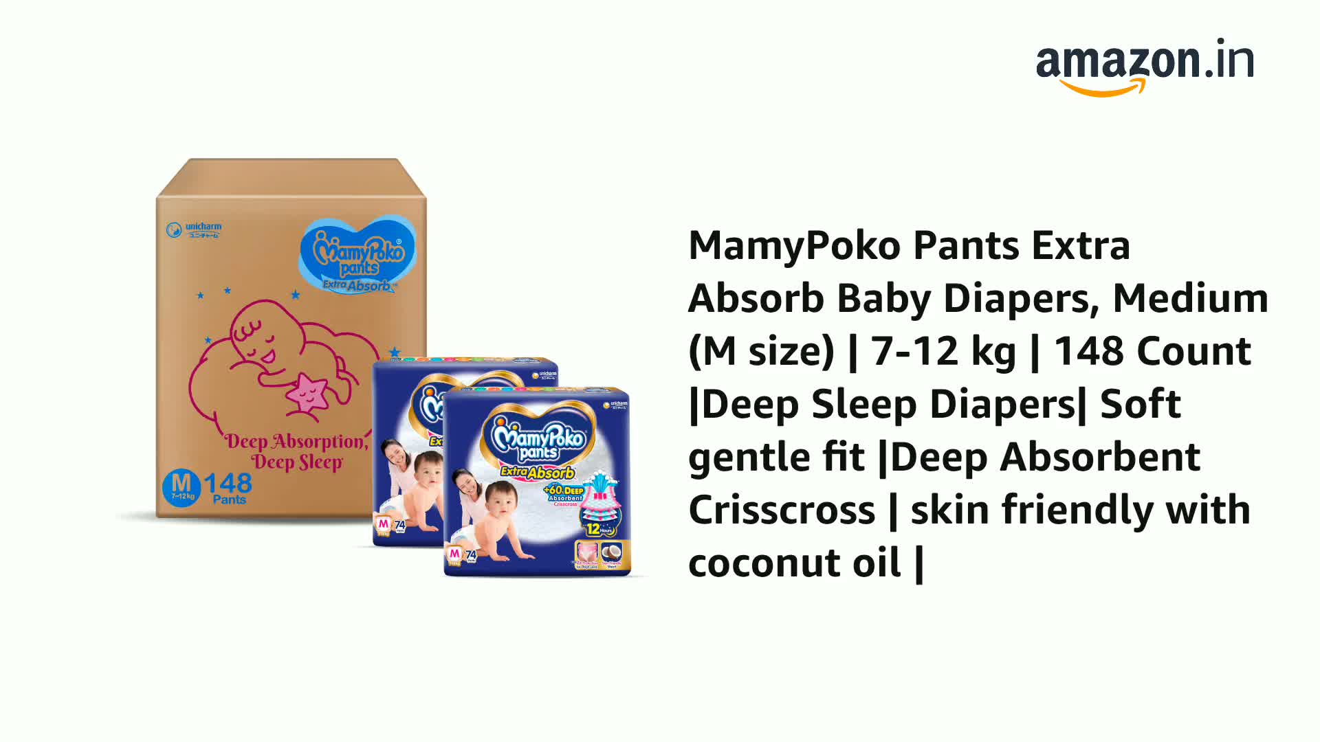 MamyPoko Pants Extra Absorb Baby Diapers, Medium (M size) | 7-12 kg | 148 Count |Deep Sleep Diapers| Soft gentle fit |Deep Absorbent Crisscross | skin friendly with coconut oil |